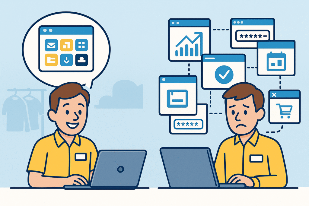 Imagine: you’re a store employee starting your day. First you open the point of sale app, then the stock app, and after that the planning tool. All with different logins. Before you can actually get to work, several minutes are gone. Valuable time you’d rather spend on service and customers.